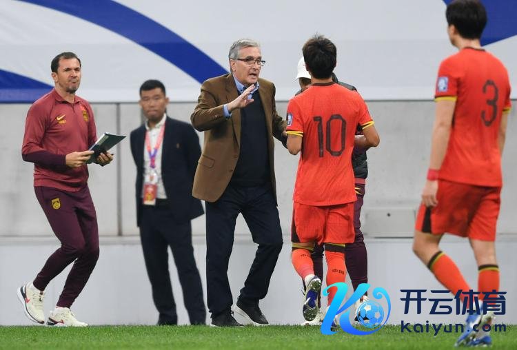 10月15日,中国队主阐述注解伊万科维奇(前左二)与球员韦世豪(右二)疏通。新华社记者 李紫恒 摄