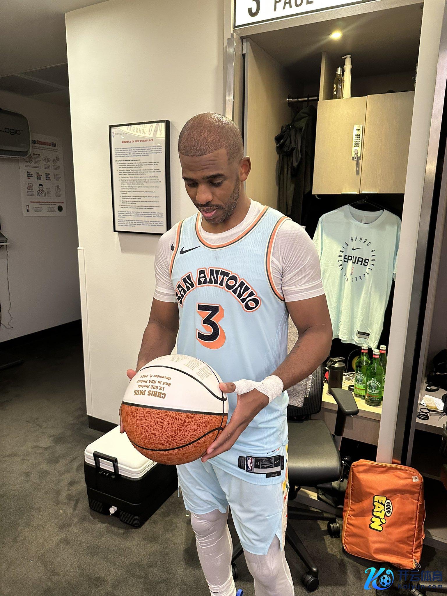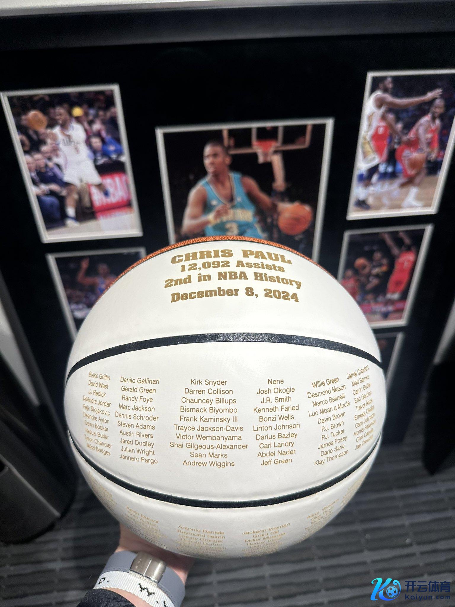 赛后,保罗收到了一个独特的系念球,上头有保罗助攻过的173个队友的名字,其中助攻次数最多的是格里芬(1157个)。