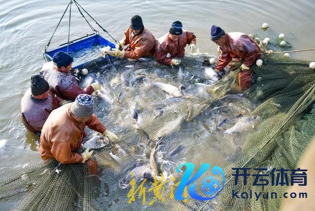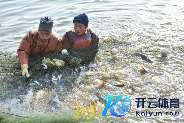 身穿连体防水服的渔民们在数千平淡米的鱼塘内撒网,随后王人心合力,将一张繁多的渔网逐步拉出水面,一条条活蹦活跳的鱼儿引来旅客们的阵阵甘心。