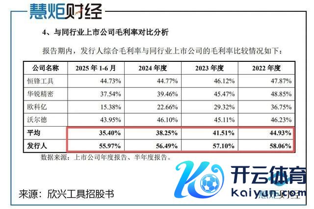 财务数据剖判,2022年至2025年上半年,欣兴器用抽象毛利率区别为58.06%、57.10%、56.49%、55.97%,永恒高于同业业上市公司平均值,其中2025年上半年抽象毛利率55.97%,仍显耀高于华锐精密、欧科亿等同业企业(同期同业平均毛利率约35%-45%)。公司讲明称,高毛利率源于家具工艺上风、边界效应及成本端正身手,但监管质疑其合感性。