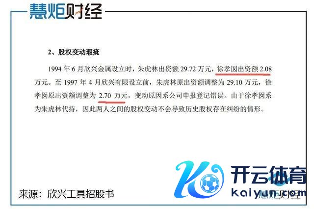 其二,代握左券缺失,股权变动原理合感性存疑。公司称,徐孝囡为家庭主妇,无有关从业及投资辅导,基于叔嫂信任代为握股,未签署代握左券及消除代握左券。但代握期限长达9年,时间股权比例曾发生调遣:1997年欣兴有限竖立前,朱虎林出资额调遣为29.10万元,徐孝囡调遣为2.70万元,公司讲明为"讲述登记造作"。该讲明珍重合感性,登记造作触及的出资额变动达0.62万元,占徐孝囡运转出资的30%,且未提供任何登记造作的佐证材料,无法打消该变动存在未表露的代握调遣。