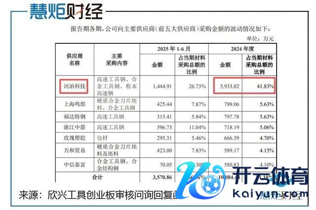 从订价公允性来看,公司未公开向河冶科技的具体采购单价,也未提供与同业业其他企业向河冶科技采购的单价对比数据。勾通行业情况,河冶科技为国内有名高速器用钢坐褥企业,家具订价具有公开市集参考价,而欣兴器用采购占比大幅上升,河冶科技预测W6 高速器用钢预测仍会有所上升,在刻下价钱基础高潮幅度10%-15%摆布,导致采购成本加多,侵蚀毛利率;此外,2024年公司向河冶科技采购占比达41.83%,已酿成对单一供应商的高度依赖,若河冶科技出现产能不及、价钱大幅高潮或合营断绝等情况,将径直影响公司的坐褥方针,且公司未表露应酬供应商依赖的灵验措施。