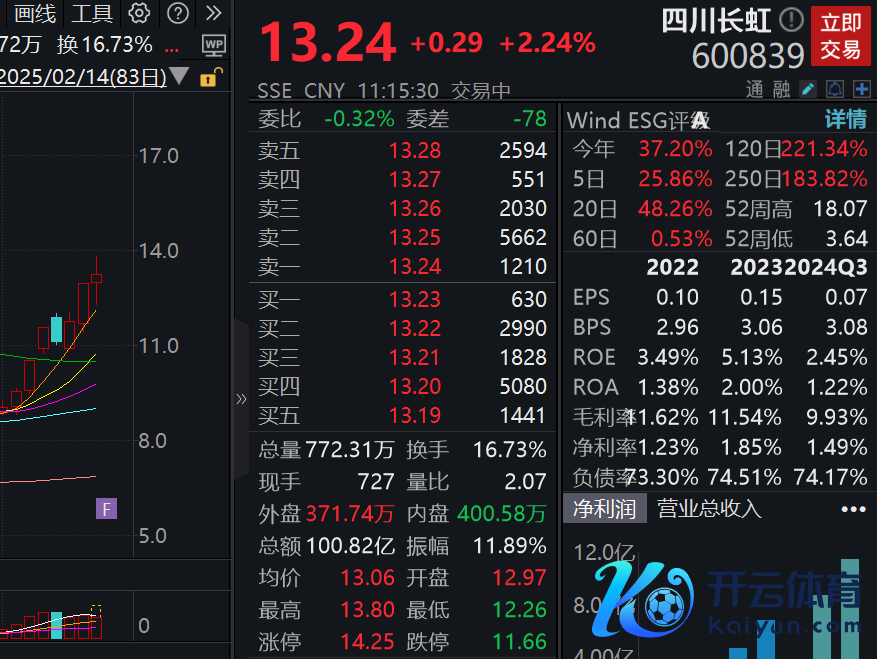 2月14日,四川长虹股价盘中拉升开云体育(中国)官方网站,限度发稿,该股涨超2%,报13.24元,成交额超100亿元。2月以来该股股价快速反弹,累计涨超53%。