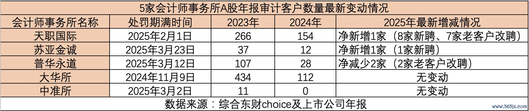 具体来看,苏亚金诚管帐师事务所(下称“苏亚金诚)和老实外洋2025年审A股客户数目均增多1家;本年,大华管帐师事务所(下称“大华所”)客户与2024年比拟发达褂讪,未发生变动;不外,普华永谈中天(普华永谈在中国大陆的法定执业主体)客户数目仍在持续减少,净减少2家;中准管帐师事务所于今客户数目归零。